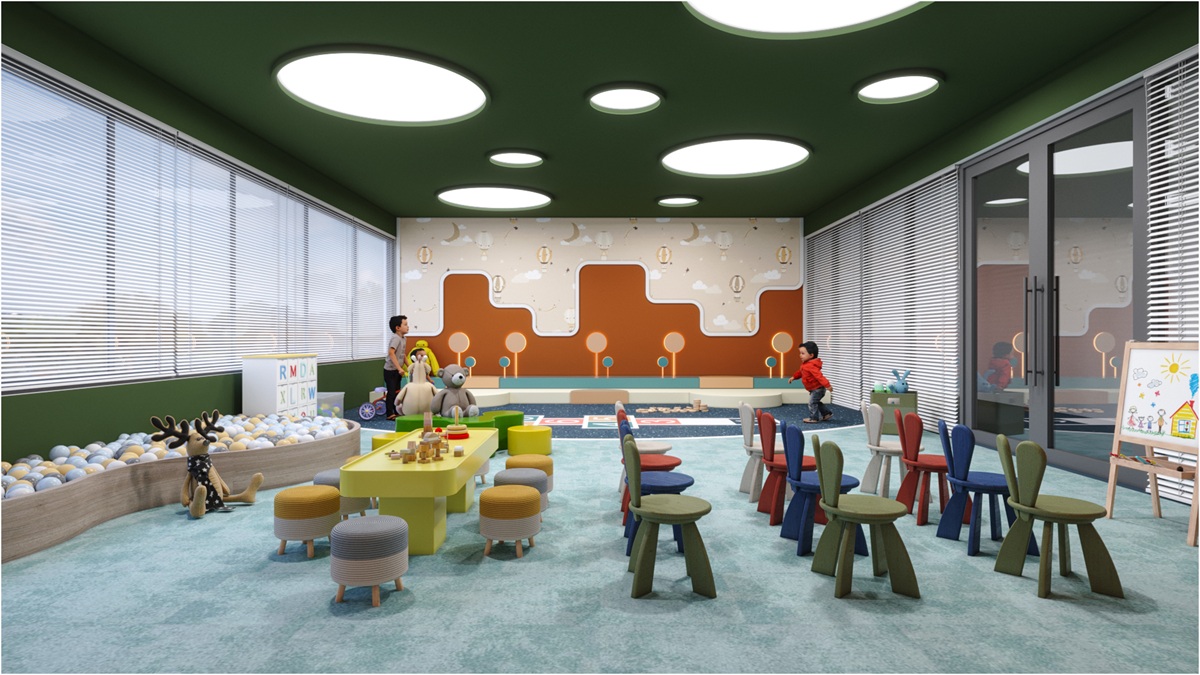 Each tower is crafted around a child development theme, from art and dance studios to amphitheatres, adventure play zones and learning spaces that inspire young minds.